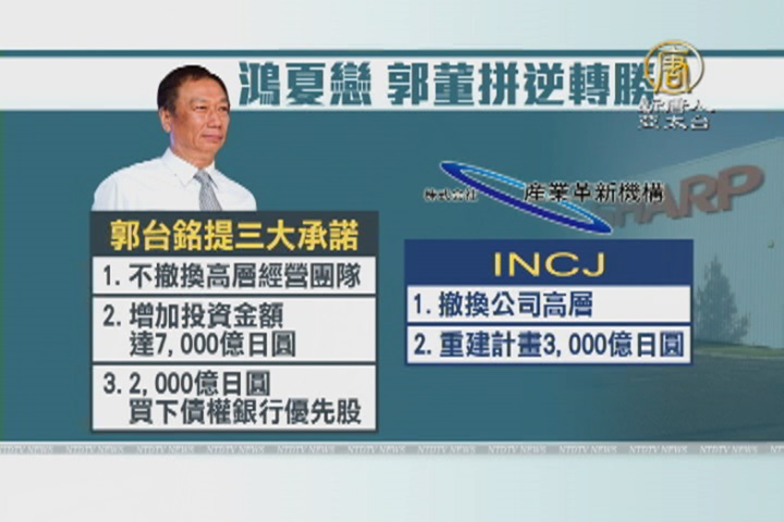 【新唐人亞太台 2016 年 02 月 04 日訊】從2012年開始,鴻夏戀可說波折不斷,專家解析關鍵原因,就是郭台銘從日本政府下手,既符合安倍經濟政策走向,外加不介入撤換高層經營團隊,都成為讓夏普內部出現轉折的主要原因。
