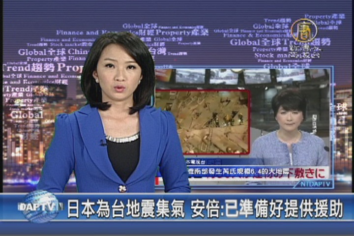 日本電視台:「今天早上,台灣南部發生芮氏規模6.4的大地震,根據美聯社,一棟十七層樓的公寓倒塌,至少造成三人死亡,三十人還受困其中。」