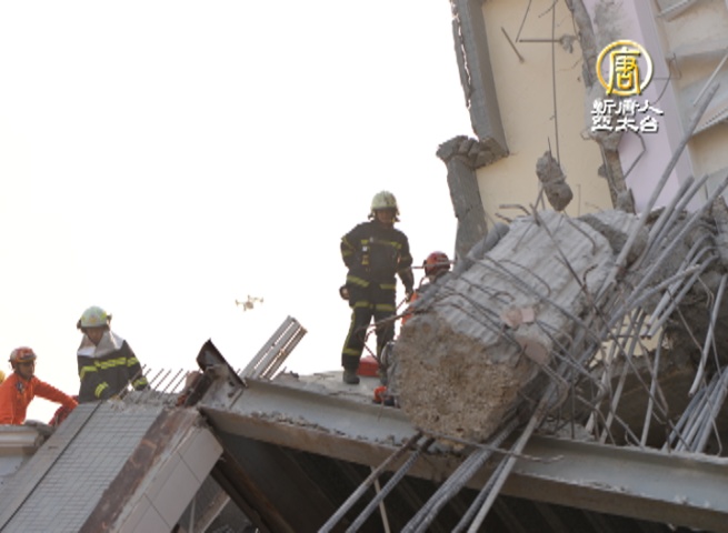 2016-02-09 07:47:34歡迎您收看新唐人亞太電視台,大年初一的報導,我們現在是持續在台南的地震災區,永康區的維冠大樓現場,為您做報導。