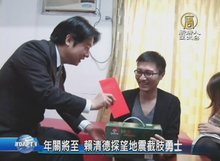 2017-01-10 13:00:42再來帶您關心,去年小年夜強震,台南維冠金龍大樓住戶洪家益,在去年小年夜強震被壓了12小時才獲救,年關已近,台南市賴清德今天專程探望雙腿截肢的洪家益,並鼓勵他演講,激勵遭遇到困難的人。