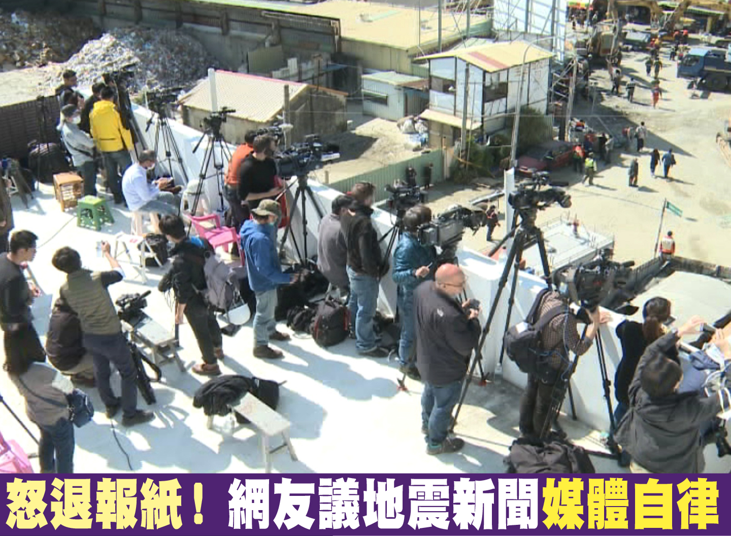 【新唐人亞太台 2016 年 02 月 11 日訊】台南地震救災進入第六天,網路上也掀起媒體自律的討論;有網友在今天怒退報紙,因為不滿報社刊出,瓦礫堆中的罹難者大體,也有網友呼籲電子媒體,不要再播放家屬哭泣的畫面,不要做不必要的渲染。