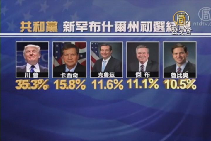 【新唐人亞太台 2016 年 02 月 11 日訊】繼續來關心美國大選初選,眾所矚目的新罕布什爾州初選,在週二晚間落幕,一如選前的民調預測,共和黨的川普與民主黨的桑德斯,最終雙雙勝出。而得票率第二名的卡西奇,則成為最大黑馬。