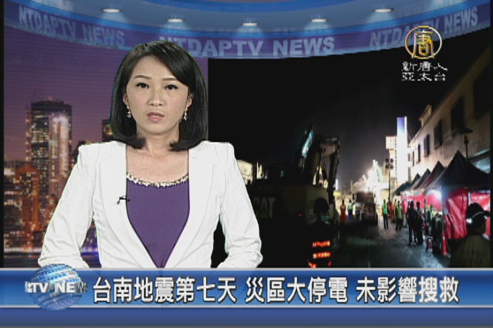 【新唐人亞太台 2016 年 02 月 12 日訊】持續關心,南台灣大震,震垮維冠金龍大樓,造成95人死亡、目前待搜救23人。最新消息,災區現場因為不明原因,目前停電中,新聞中心記者摸黑作業,不過,由於大型機具及照明設護都是燃油的,所以並沒有影響搜救進度。目前,北面的危樓已經拆除完畢,現在正搜救,壓在底下的A棟及G棟。另外,災區供水還沒有完全恢復,目前4萬5千戶減壓供水,停水5千戶,預計明天早上6點開始進行通水作業。