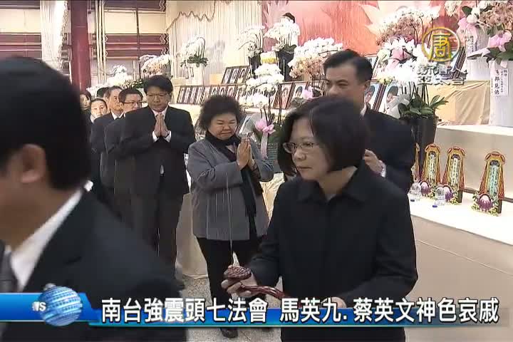 【新唐人亞太台 2016 年 02 月 12 日訊】南台灣大震第7天,今天上午舉行罹難者頭七法會,總統馬英、總統當選人蔡英文、行政院長張善政、立法院長蘇嘉全,都前往致意。不過馬總統與蔡英文,抵達現場時間不一,兩人並未碰面。