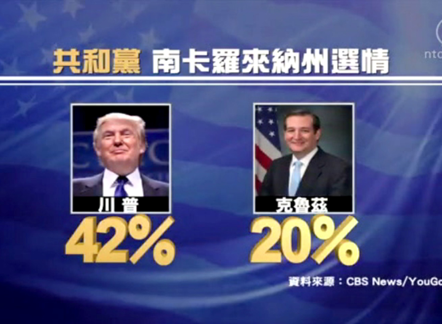 克倫比亞公司週日的民調結果顯示,川普在南卡以42%的支持度遙遙領先,超越第二名克魯茲22個百分點,盧比奧則以15%排名第三,卡西奇,傑布‧布希和卡森的支持度均低於10%,前景慘淡。