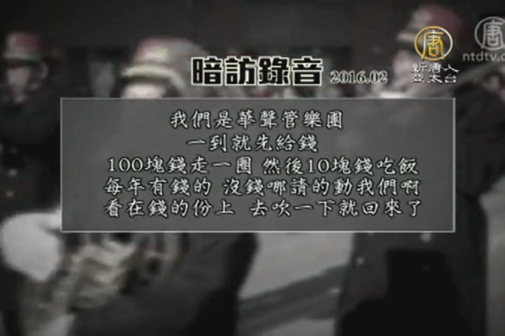 暗訪錄音(2016.02):「我們是華聲管樂團,一到就先給錢,一百塊錢走一圈,然後10塊錢吃飯。每年有錢的,沒錢哪請的動我們啊。看在錢的份上,去吹一下就回來了。」
