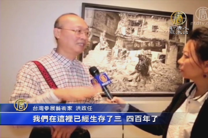 台灣參展藝術家 洪政任:「祖先把這個地方留給我們,我們在這裡已經生存了三、四百年了,那這樣一下子要拆掉,他們會認為說對不起祖先,哪有臉見祖先,其實蒙著臉就是沒有臉去見列祖列宗了。」