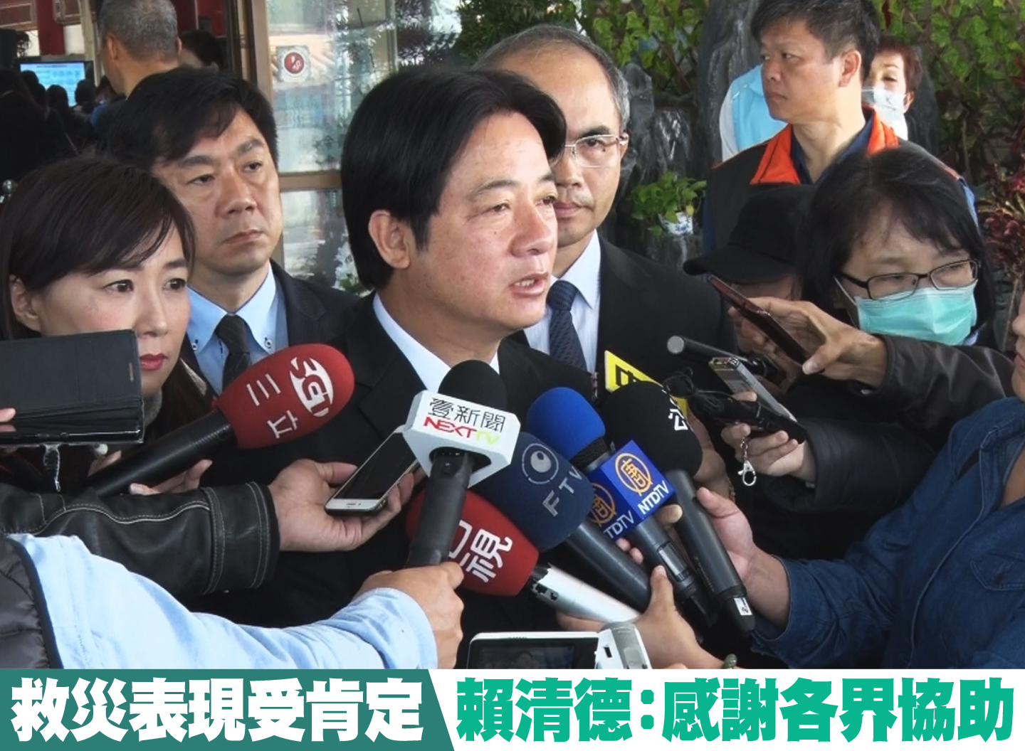 「包括來自各縣市的搜救大隊,都全力投入,也包括馬總統、總統當選人蔡英文主席,包括行政院張院長,都多次南下,社會各界出錢出力,我相信這份民調,是肯定所有參與的人,出每份力的人,捐每一份金錢的人,對他們的感謝與肯定。受影響的層面還在盤點,盤點之後,會進一步體檢,就是每一棟每一區域進行體檢,也會具體提出重建辦法。」這次救災民調受肯定,賴清德不敢居功,感謝各界協助,賴清德強調,社會的賑災捐款應公開透明運用,且實質嘉惠在災民身上,市府將籌組委員會,以昭社會公信。