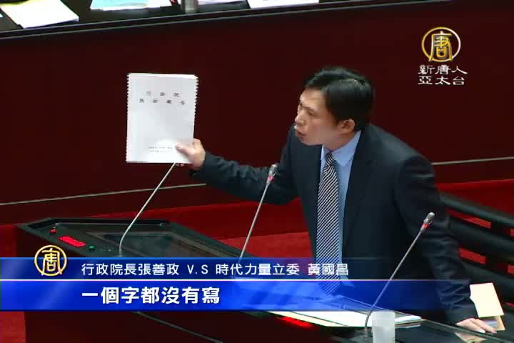 行政院長 張善政 V.S 時代力量立委 黃國昌 :「對於核廢料處理的問題著墨在哪裡,我想核廢料的處理,它有長期 中期 短期的這個,沒有,我現在,先請針對問題回答,請問記載在哪裡,218頁的內容,我詳細的閱讀,反覆的閱讀,我要跟院長報告的事情是,218頁的內容,對於核廢料的處理,一個字都沒寫 。」