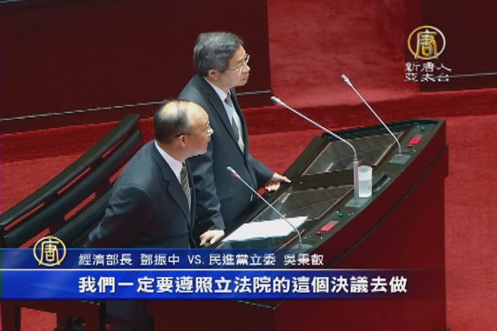 經濟部長 鄧振中 VS. 民進黨立委 吳秉叡:「中嘉的轉售案討論的過程中,有很多人提出很多的疑慮,所以之前,我們也對這一件事情有對你提出要求,希望你能夠暫時讓它緩下來。報告委員,如果立法院就這個事情有決議的話,我們一定要遵照立法院得這個決議去做,假如立法院有決議說不可以開投審會的話,我們正式會議是不會召開的。」