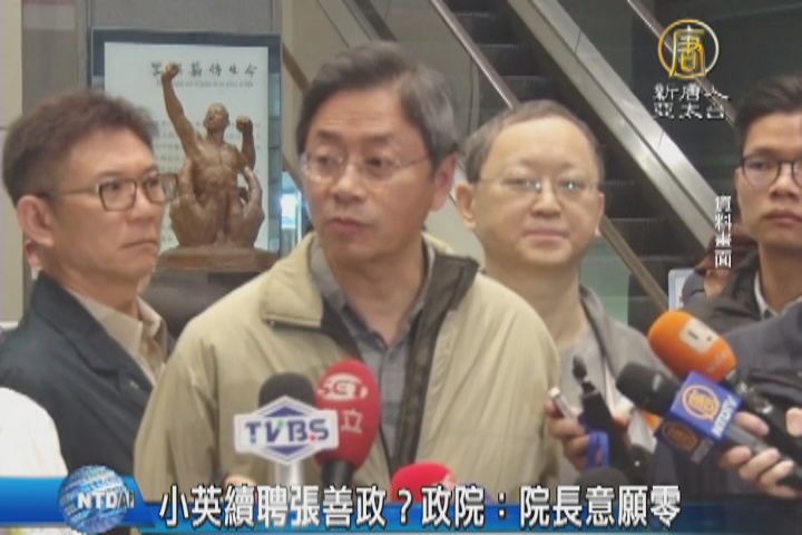 【新唐人亞太台 2016 年 02 月 22 日訊】行政院長張善政在206大地震的救災、勘災、指揮等等表現受到外界肯定,民進黨總統當選人蔡英文被傳有意「續聘」張善政。對此,行政院發言人孫立群今天受訪時說,沒聽說這個消息,並強調,張善政到目前為止在公開場合的說法,個人意願都是零。
