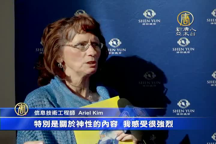 資訊技術工程師Ariel Kim:「神韻包含了重要的資訊。不僅僅是給人以視覺上的享受,和觸動人心的動聽音樂,神韻帶來一種清澈的感覺,讓人們關注世界上即將發生的變化,並且給予支持。人類是一體的,我們都有同樣的精神世界,我們應該互相關心愛護,而不能只管自己。」