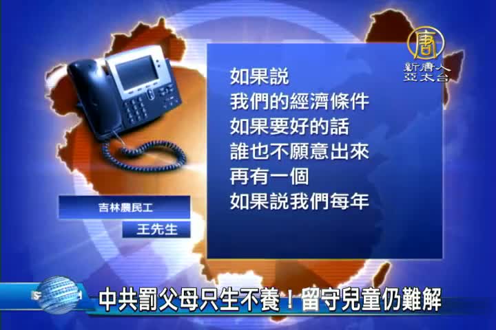 【新唐人亞太台 2016 年 02 月 22 日訊】在中國大陸,農村留守兒童有6100多萬,還有近4千萬的流動兒童。他們的教育生活存在很多問題。近期,中共國務院發佈《意見》說,那些外出務工的父母不能「說走就走」,要對個別「只生不養」的父母進行懲罰。那麼,懲罰留守兒童父母是解決的辦法嗎?