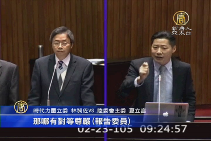 【新唐人亞太台 2016 年 02 月 23 日訊】政治焦點話題來看到,以搖滾歌手身分進入立法院的時代力量立委林昶佐,今天(23)首次質詢官員。對於台灣長期使用「中華台北」名稱參加國際賽事,林昶佐詢問官員,既然馬政府向來主張兩岸並非國與國關係,是不是該用「中華北京」稱呼對岸。