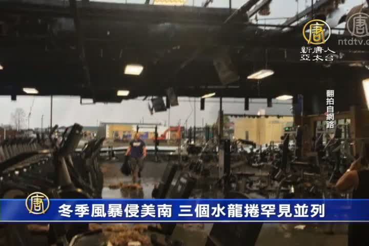 【新唐人亞太台 2016 年 02 月 24 日訊】再看到怵目驚心的畫面,美國南部遭到強烈冬季風暴侵襲,不但許多地區傳出龍捲風,還罕見地出現三個水龍捲風,同時並列。