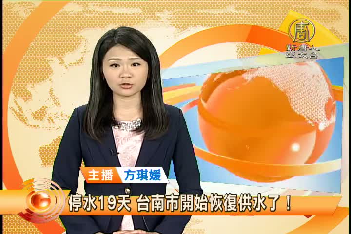 【新唐人亞太台 2016 年 02 月 24 日訊】南台強震後,全台南市有40萬戶,因為永大路維冠震災現場的水管遭破壞而停水,經過搶修後,今天上午八點台水開始供水,預計今天入夜之後,全台南市可以恢復震災之前的供水狀態。