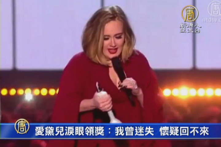 【新唐人亞太台 2016 年 02 月 26 日訊】全英音樂獎是英國音樂界大獎,英國創作型天后歌手愛黛兒奪下最佳女歌手等4大獎,舞台上,她甚至激動落淚地說,自己曾經迷失過,擔心回不來表演領域。