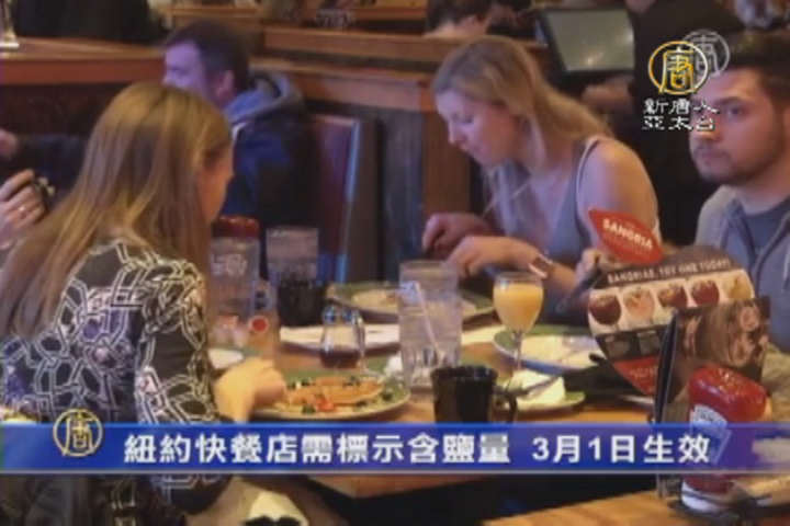 【新唐人亞太台 2016 年 02 月 26 日訊】帶您看到,全美國最大城市紐約,為推動健康做出一個新創舉,那就是菜單必須標示含鹽量,去年12月實施以來,遭到飲食界反對一狀告上法院。不過,日前法院裁定這項法規有效,從三月一號開始,如果不遵守,將被開罰200美金。