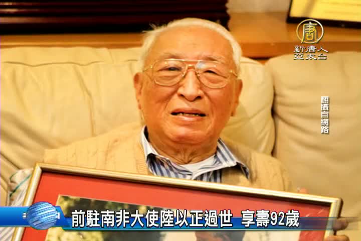 【新唐人亞太台 2016 年 02 月 26 日訊】外交部晚間證實,資深外交官及前駐南非大使陸以正今天早上在醫院過世。陸以正生於民國13年,江西南昌人,曾任行政院新聞局國際宣傳處處長、駐紐約新聞處主任、駐奧地利代表、駐瓜地馬拉大使,及駐南非大使。對陸以正的辭世,外交部表示深切哀悼之意,並推崇陸以正是令人尊敬的外交官,是外交界的典範。