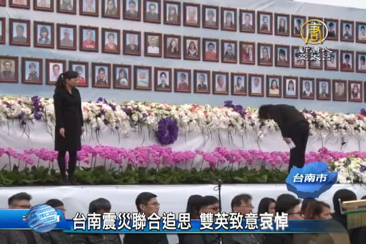 【新唐人亞太台 2016 年 02 月 27 日訊】台南市府,今天舉辦206台南震災罹難者聯合奠祭暨追思會,同時也是大選之後,總統馬英九,與總統當選人蔡英文首度同台。