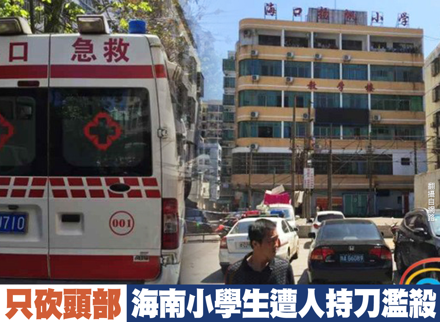 【新唐人亞太台 2016 年 02 月 29 日訊】中國新聞,帶您關心,中國又傳出小學生遭人隨機砍殺的事件。中國海南海口市一座小學,今天上午,驚傳有多名小學生,遭到不明男子持刀砍殺,導致8名小學生傷重送醫, 據中國媒體《南海網》報導,今天上午11點左右,中國海南海口市一座小學在放學的時候,有一名男子持刀朝多名小學生砍殺,而且只針對頭部亂砍,校門口則還散落著學生的書包和鞋子,地上殘留大量血跡。2010年福建,2012年河南,以及2014年湖北的小學,都發生嚴重的小學校園隨機砍人事件。