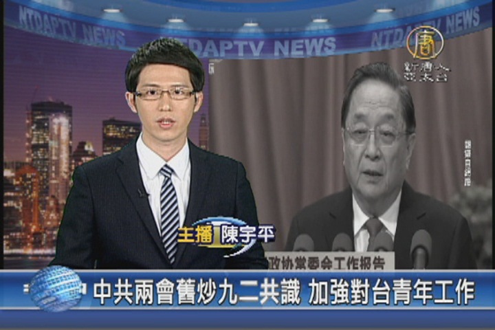 【新唐人亞太台 2016 年 03 月 03 日訊】中共今天召開兩會,針對兩岸關係,中共政協主席俞正聲今天老調重彈,俞正聲再次搬出「九二共識」「反台獨」,另外,台灣學運力量高漲,政治版圖翻轉;俞正聲說,要開展面向台灣青少年的體驗式交流,針對在中國就讀台灣學生的就業情況開展調查研究。