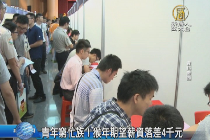 【新唐人亞太台 2016 年 03 月 04 日訊】有求職網今天發布調查,發現今年,高達95%的社會新鮮人,畢業後就決定投入職場,只有5%選擇進修,至於期望薪資,為3萬1538元,比去年增加321元;但是,企業主願意提供的新鮮人起薪只有2萬7287元,兩者相差4千251元。而主計總處統計20到24歲這個年齡層,失業率高達12.59%,換算下來,每7到8個人當中就有一人沒工作,可是這個年齡層明明就是剛出社會、最有衝勁的時候,為什麼失業呢?青年薪水太低,工作多、錢又少,變成窮忙族,可能也是原因之一。