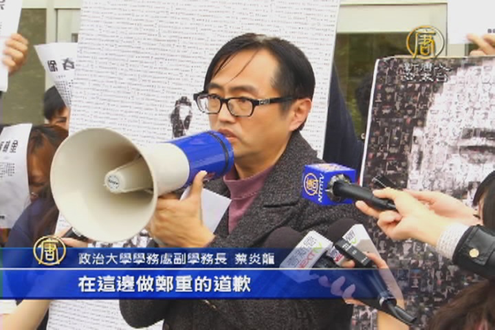政治大學學務處副學務長 蔡炎龍:「代表學務處,在這邊跟所有的政大的同學,還有老師,還有造成社會的紛擾,在這邊做鄭重的道歉,我們會深摯的檢討。」