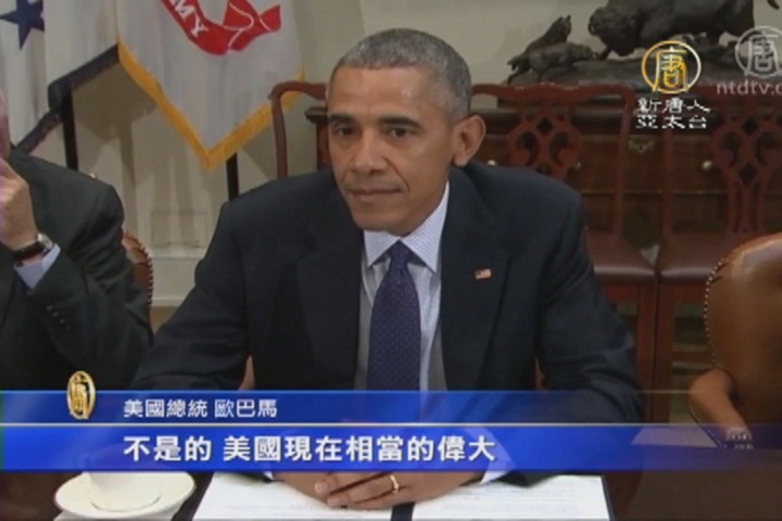美國總統 歐巴馬:「我想這會有幫助,因為有些政客們描述的是完全不同的情況,把美國說的像垃圾一樣。不是的,美國現在相當的偉大。」