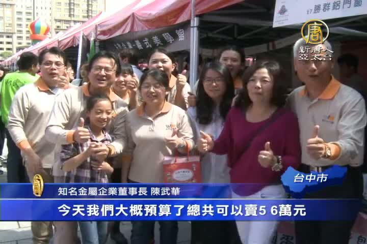 知名金屬企業董事長 陳武華:「上個禮拜是由廠務來主辦,然後這個禮拜是由我們行政單位來主辦,所以我們在公司的內部,我們做成一種競賽的活動,一起讓公司所有的員工,一起來響應這樣子的公益活動,今天我們大概預算了總共可以賣5、6萬元,至少會捐出5萬元,大家做得非常的快樂。」