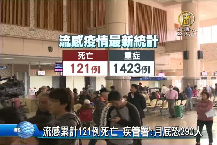 【新唐人亞太台 2016 年 03 月 08 日訊】再來看到,流感疫情持續延燒,疾管署最新統計,累計從去年7月進入本流行季以來,已有1423例重症、121例死亡,疾管署今天也首度預估流感重症和死亡人數,到3月底死亡人數可能來到290人。不過疾管署也表示,國內流感併發重症通報數緩慢下降,已過感染高峰期,因應疫情,疾管署將重新研擬疫苗政策,朝提升疫苗接種率目標邁進。