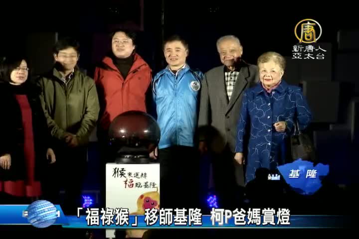 【新唐人亞太台 2016 年 03 月 13 日訊】台北燈會爆紅的福祿猴,今晚起移駕到基隆燈會擔任主角,雖然下雨,但還是湧入大批民眾,就連台北市長柯文哲的爸爸媽媽也受邀北上賞燈。