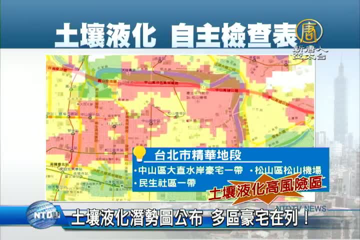 【新唐人亞太台 2016 年 03 月 14 日訊】全台土壤液化潛勢區,今天正式上線,一連串火線新聞,首先帶您看到:台北市中心精華區,有許多被列為紅色潛勢區,房價是否因此大幅走弱,立刻引發討論。不過,行政院記者會,發言人孫立群是一再強調,儘管在高風險潛勢區,民眾也不用太過恐慌。