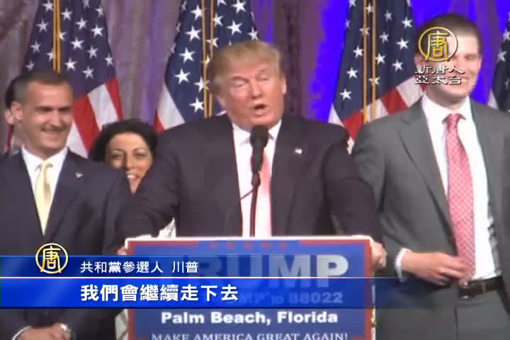 【新唐人亞太台 2016 年 03 月 17 日訊】再來看到,美國總統初選,川普和希拉蕊,在本周的超級星期二選戰中,再次出線,而曾經發表對台友好言論的共和黨 盧比歐,則宣布退戰。
