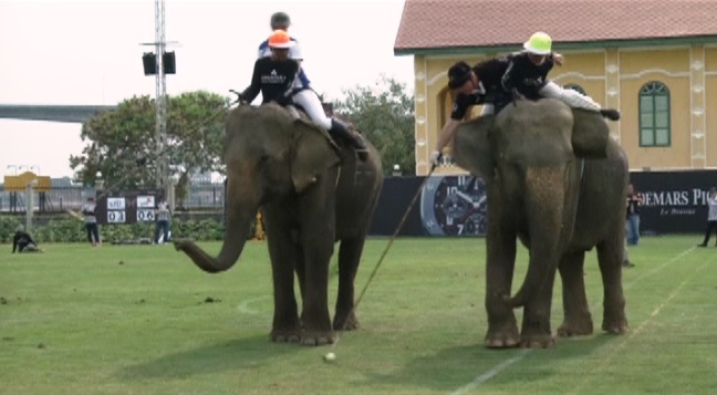 裁判在哨音下把球扔出,令人緊張的馬球錦標賽就此展開。但不同一般的馬球比賽,球員不是坐在馬背上,而是坐在體型巨碩的象背上進行。