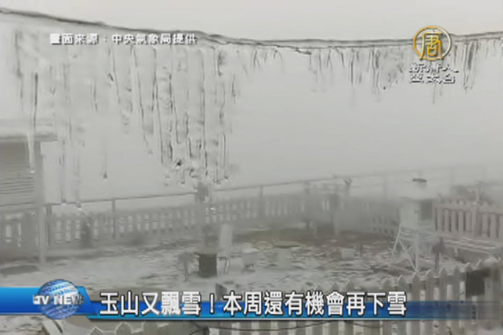 【新唐人亞太台 2016 年 03 月 21 日訊】雖然已經是三月天,不過玉山,又再度飄雪了。來看到,因為天氣寒冷再加上水汽多,今天(21日)下午四點01分,玉山又開始下雪了,氣象局表示,本周玉山,都還有下雪的機會。同時也提醒觀眾朋友,隨著週四(24日)強烈大陸冷氣團南下,各地氣溫都會明顯下降,北部地區周五、周六,最低溫將下探 9度,全台也都會有短暫陣雨發生,預計要到下周一,才會逐漸回溫。