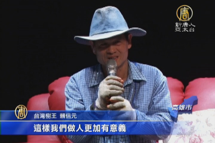 【新唐人亞太台 2016 年 03 月 22 日訊】在台灣有一個堅持種樹的男人,他就是「台灣樹王」賴倍元,人稱「賴桑」,31年花了20多億種下31萬棵台灣國寶樹,也立下「不砍伐、不買賣、不傳子」三不政策,要把「種樹救地球」的志業,永續傳承下去。日前(19日)在高雄市社會教育館演講,吸引近千人前來聆聽,了解他如何投入造林志業,以及一路走來的酸甜苦辣。