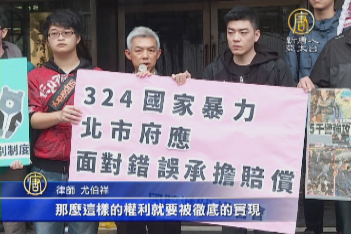 【新唐人亞太台 2016 年 03 月 23 日訊】324行政院暴力驅離事件,今天滿兩週年,但施暴員警身分,仍下落不明,民間司改會以及義務律師團,來到台北地方法院召開記者會,為30位受暴民眾申起國賠,要求北市府以及北市警局應該負起國賠責任,並且查明施暴員警身分。