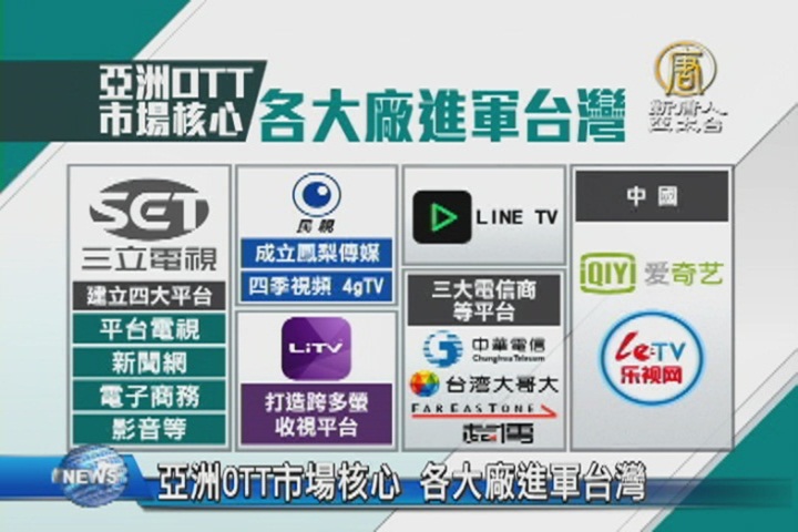 OTT快速發展,台灣影視相關業者積極投入,包括即將上線的三立、剛上線不久的民視四季、目前市佔最高的 LiTV、日韓系的 LINE TV,及三大電信商等平台,就連中國兩大OTT業者愛奇藝、樂視網,也前進台灣。