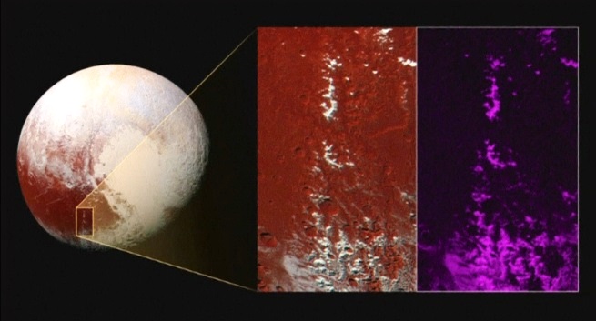 太空總署的網站表示:科學家認爲照片中發亮的物質有可能是甲烷,它們就像是雪一樣覆蓋在冥王星的這些山峰上。