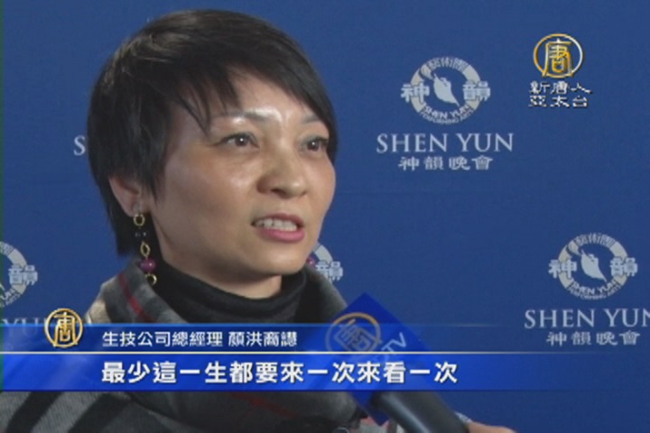 生技公司總經理 顏洪裔譿:「每一個人真的就是應該都,最少這一生都要來一次,來看一次,整個一開場就馬上抓住我的心,就覺得哇,真的超感動的。就是整個這樣子下來,每一個節目,她真的都是能夠,就是能夠讓我們觸動到,你會看到所謂的中國之美,然後力與美,然後你會不斷的透過音樂,在那個此刻,你會完全忘了所有的煩惱。」