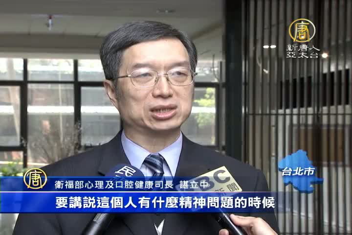 【新唐人亞太台 2016 年 03 月 30 日訊】內湖4歲女童遭當街隨機殘殺案,台北市刑警大隊發布新聞稿定調為「精神病患殺人」事件,本身是精神科醫師的衛福部心口腔司長諶立中認為,精神問題不代表有精神病,需經正式鑑定才能判定。