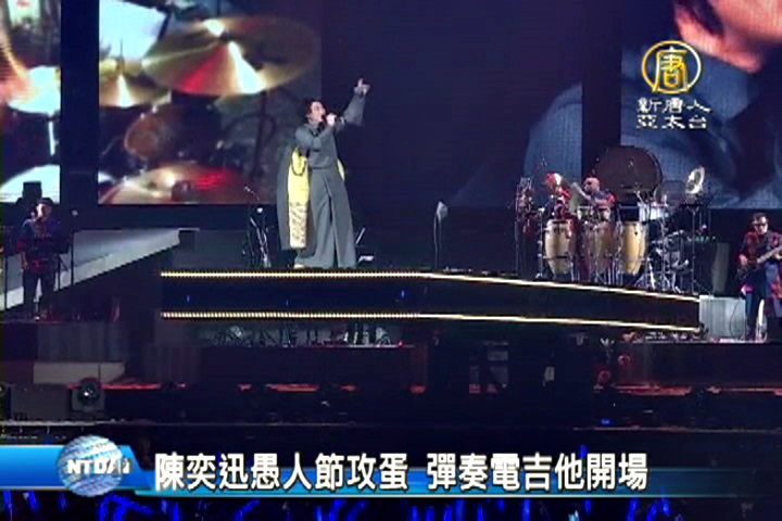 【新唐人亞太台 2016 年 04 月 01 日訊】娛樂消息來看到,香港歌手陳奕迅睽違2年,再度來台攻蛋,今天晚上,陳奕迅以彈奏電吉他 開場,帶給歌迷驚喜,馬上看到稍早的畫面。