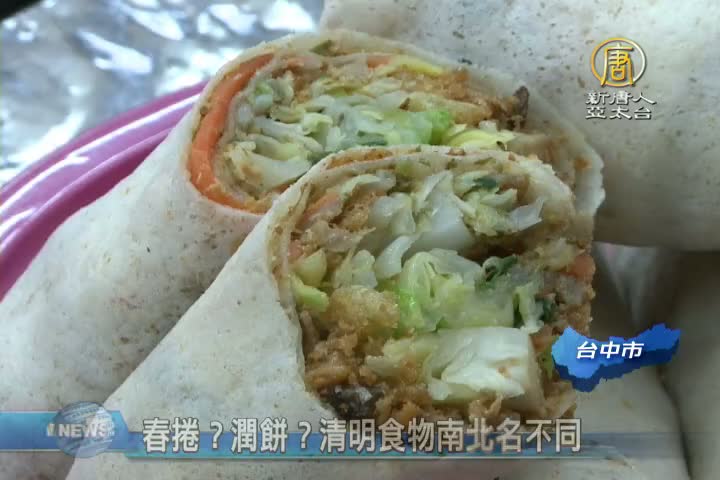 【新唐人亞太台 2016 年 04 月 01 日訊】清明節「吃潤餅」已經成為一種習俗,白色捲皮包裹著涼菜,有人說是「潤餅」,也有人說是「春捲」,相同的東西,在南北有不同的稱呼。