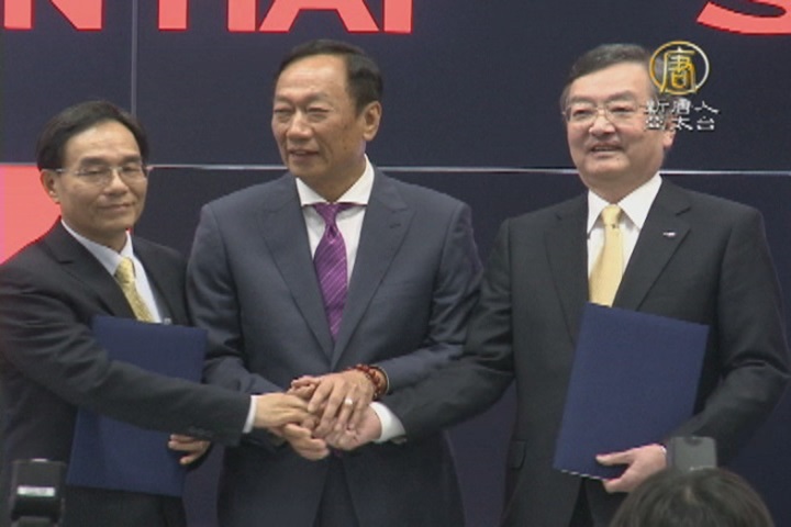 【新唐人亞太台 2016 年 04 月 02 日訊】一連串的新聞,帶您看到,長跑4年,鴻海與夏普,在今天(週六)正式完成簽約!鴻海總裁郭台銘、副總裁戴正吳與夏普社長高橋興三,今天下午2點,在日本大阪(土界)市顯示器製造有限公司召開記者會,現場高掛中華民國國旗,以及日本國旗,在眾多國際媒體的見證下,雙方完成簽約儀式。