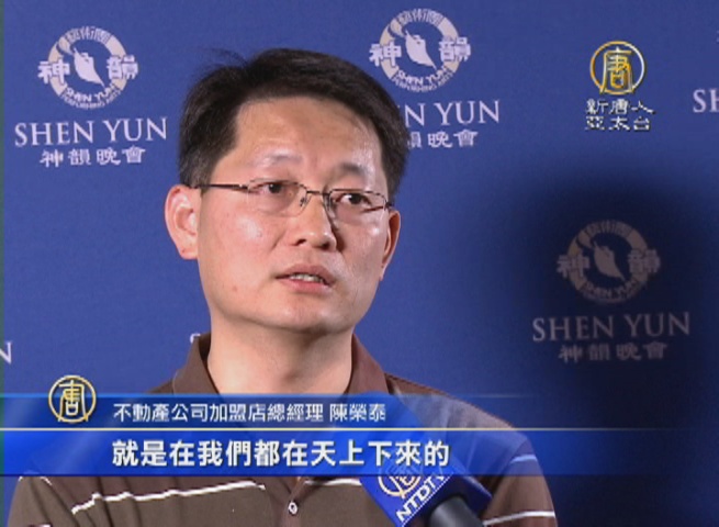 不動產公司加盟店總經理 陳榮泰:「神韻可以讓我們喚起現代的人的真善美,而不是、現在我們的社會亂象很多,我覺得說我們要從小去扎根,可以讓我們的社會更淨化,更深層這樣子。」