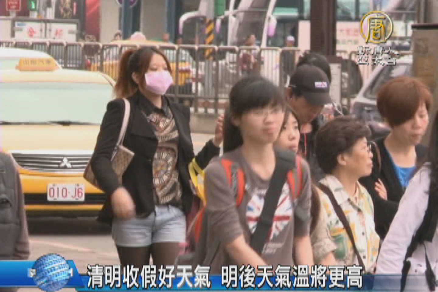 【新唐人亞太台 2016 年 04 月 05 日訊】清明連假最後一天,氣象局說,全台各地大多是多雲到晴的天氣,明後天氣溫會更高,不過,中南部日夜溫差將近10度,提醒觀眾朋友,還是要多留意增減衣物。