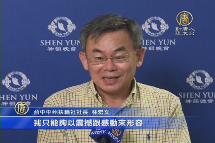 台中中州扶輪社社長 林宏文:「我只能夠以震撼跟感動來形容。我覺得每一個曲目都很令人感動,因為每一個曲目都很不一樣!也許是不同朝代,或者不同的這一些民族,這裡面都融合了很大的、很大的美,還有力的表現。」