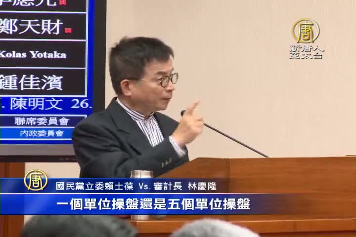 國民黨立委賴士葆 Vs.審計長 林慶隆:「 現在如果你把國安基金廢掉,那個五千億是交回國庫呢?這個跟你有關係啦,還是五千億放到主權基金裡面去? 這個你要小心啦,很多財經界的人說,哦, 請問誰來操盤, 這些基金整合起來就上兆,誰來操盤?一個單位操盤還是五個單位操盤,要不要規範行政法人,這裡面有沒有利益輸送?如果新政府520之後,要成立主權基金,你的眼睛要睜得很大,你不要到時候左手右手,這個錢就跑到特定人的人員去哦。」