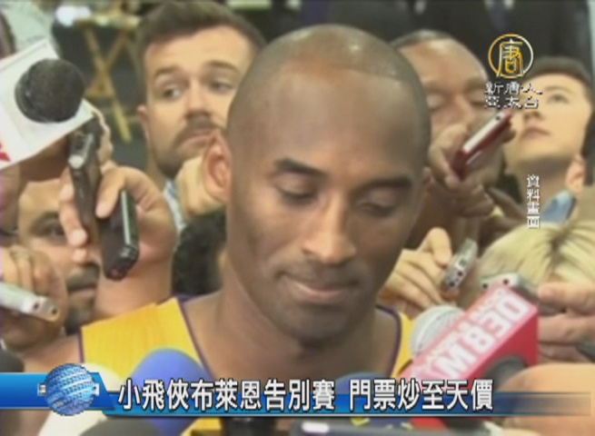 【新唐人亞太台 2016 年 04 月 13 日訊】湖人隊37歲傳奇球星 小飛俠布萊恩,明天在洛杉磯對上猶他爵士隊,將是他球員生涯中的最後一場比賽。闖盪NBA 20年,湖人隊沒有透露布萊恩的生涯最終戰,上場多長時間,但告別賽門票早就賣光了。在一些黃牛網站上,一張門票已經炒到美金2千多元,比正常門票價格高出5倍。到週二早上,票價被炒到2萬8千美金。